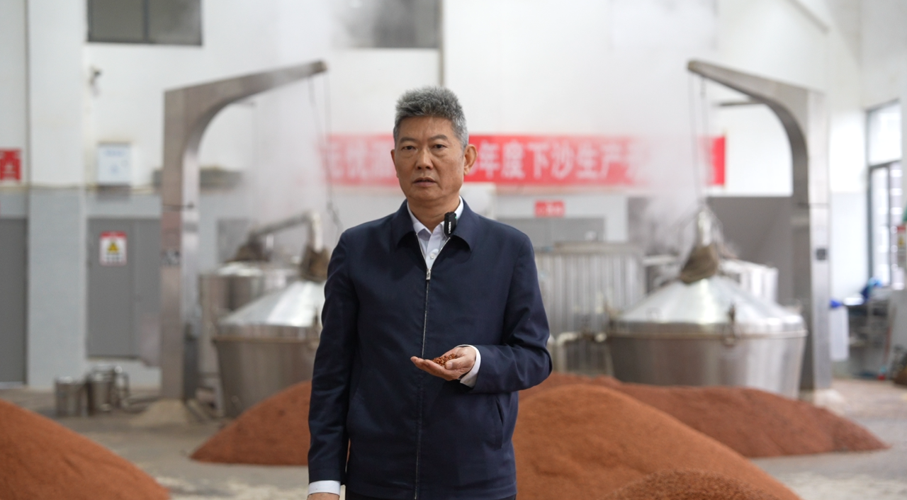 领导检查糟醅堆积发酵